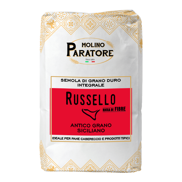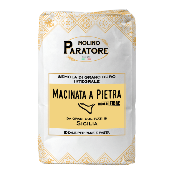 Questa semola ottenuta da grani duri siciliani conserva tutte le parti del grano. La presenza di crusca fine e crusca a foglia larga ne arricchisce il sapore e ne