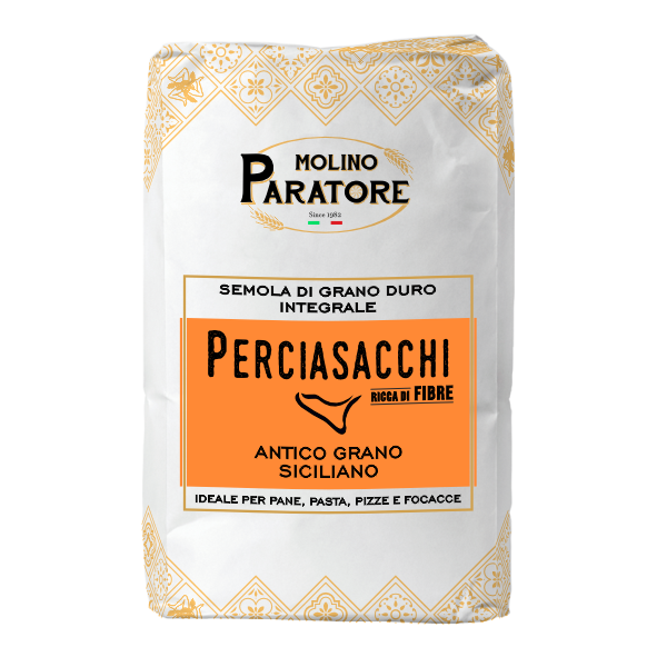Il grano Perciasacchi, il cui nome significa letteralmente «buca sacchi» per la forma appuntita della cariosside che perforava i sacchi di juta, è un antico grano duro coltivato in Sicilia da secoli. Molto versatile e caratterizzato da un alto valore proteico, questa semola di alta qualità si presenta con un colore giallo intenso, dovuto alla presenza di carotenoidi, ed è particolarmente indicata per la produzione di un pane casereccio dal caratteristico colore dorato.